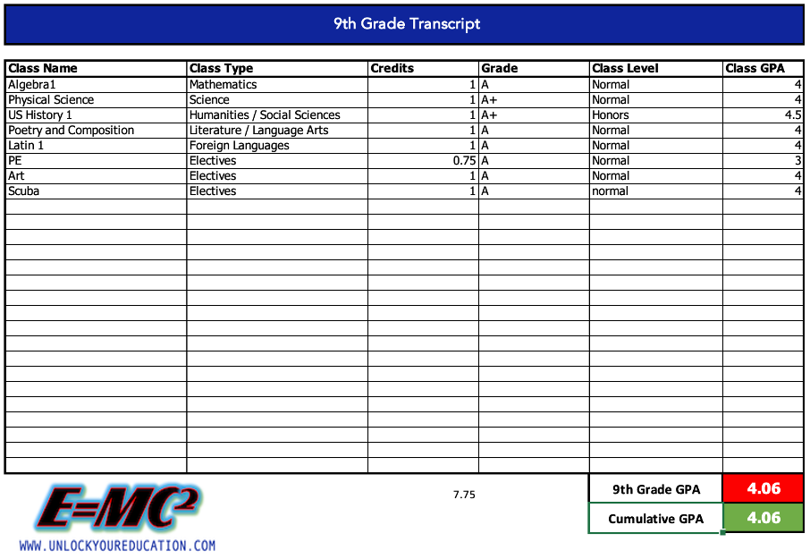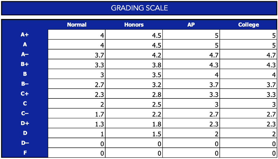 * Drop down type of class (Normal, Honors, AP, College Class)